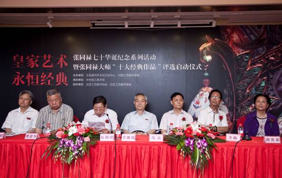 图片说明:景泰蓝第一人张同禄大师“十大经典作品”评选启动仪式开幕,文化部中外文化交流中心、中国工艺美术学会、北京工艺美术协会等领导出席。