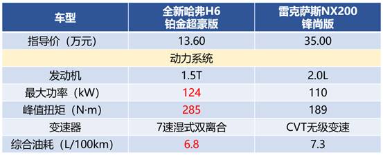 在一部分人的固有观念中,自主品牌在动力方面要落后于德系、日系,但实际结果却未必如此。通过动力对比不难发现,全新哈弗H6铂金版无论动力、油耗,都完爆雷克萨斯NX200。