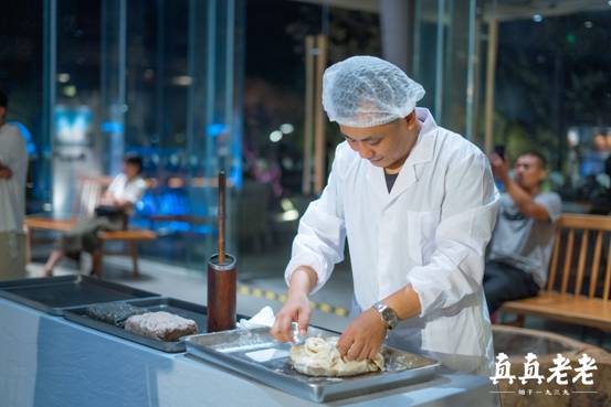作为嘉兴粽子的代表品牌之一、嘉兴地道美味的传承者与创新者,真真老老早已不局限于生产粽子,月饼、青团、八宝饭等产品都已经在市场上具备了较强的市场竞争力。此次月饼品鉴会上,真真老老带来了七款月饼,其中便有来自新塍古镇传统配方的苏氏白桃茉莉月饼,在传统配方基础上加入茶元素,老工艺加新配方,成就更符合现代饮食习惯的“网红产品”。品鉴会现场也邀请了真真老老苏氏月饼制作的老师傅现场展示了手工完成的月饼。深谙月饼情感的厚重,真真老老这么些年来在月饼的研发当中,亦保留着坚守和延续的初心。