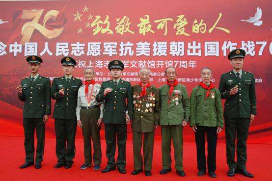 1025日,中国人民志愿军抗美援朝出国作战70周年暨上海志愿军文献馆开馆7周年纪念活动在上海志愿军文献馆的志愿军广场举办。当天,有21位志愿军老战士及家属、相关领导、专家等200余位嘉宾,以及部队官兵和学校师生等齐聚一堂,共同见证这一历史时刻。